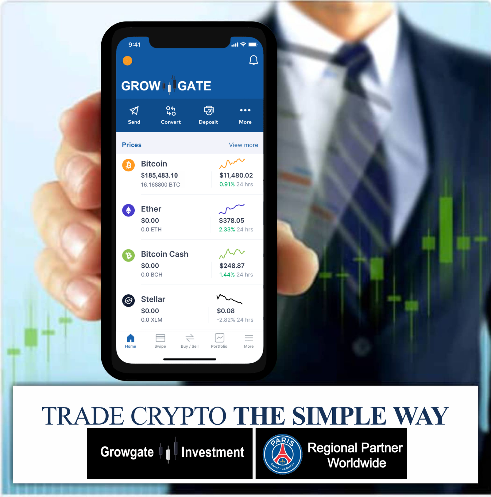 With Growgate Investment, cryptocurrencies are traded against fiat currencies. The main pairings are bitcoin/USD, ether/USD, NEO/USD, stellar/USD, EOS/USD and litecoin/USD.
